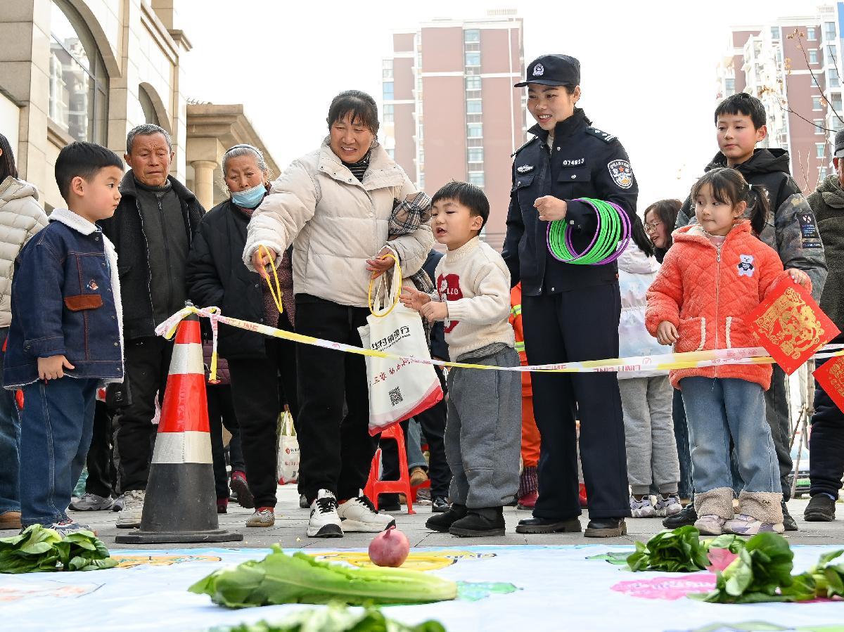 2月5日,安徽省馬鞍山市和縣公安局民警在禹錫社區(qū)開展“套圈”有獎趣味活動,讓群眾在寓教于樂中提升防騙識騙能力。
