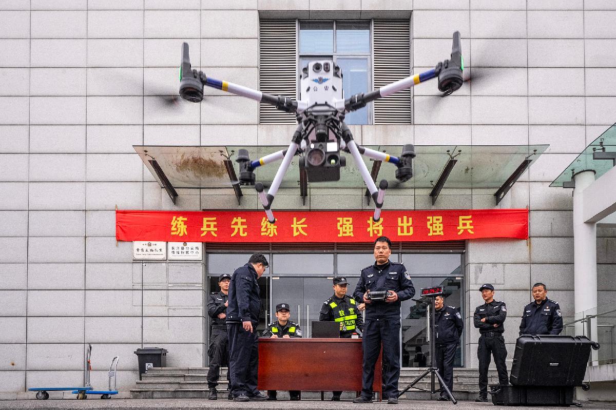 圖為巡特警大隊組織開展警用無人機高空偵測科目比武。