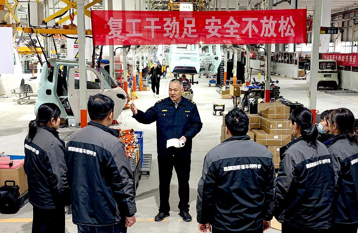 圖為2月26日,安全專家在某公司總裝車間為員工上節(jié)后“開工安全第一課”。