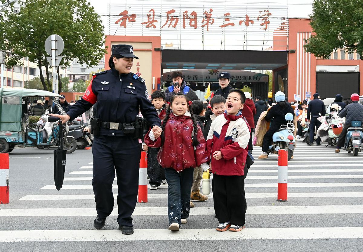 3月4日,安徽省馬鞍山市和縣公安局民警在歷陽鎮(zhèn)第三小學(xué)護(hù)送學(xué)生安全通過馬路。當(dāng)日,和縣公安局全面啟動“民警護(hù)學(xué)崗”,維護(hù)校園及周邊治安秩序,保障學(xué)生安全上下學(xué)。