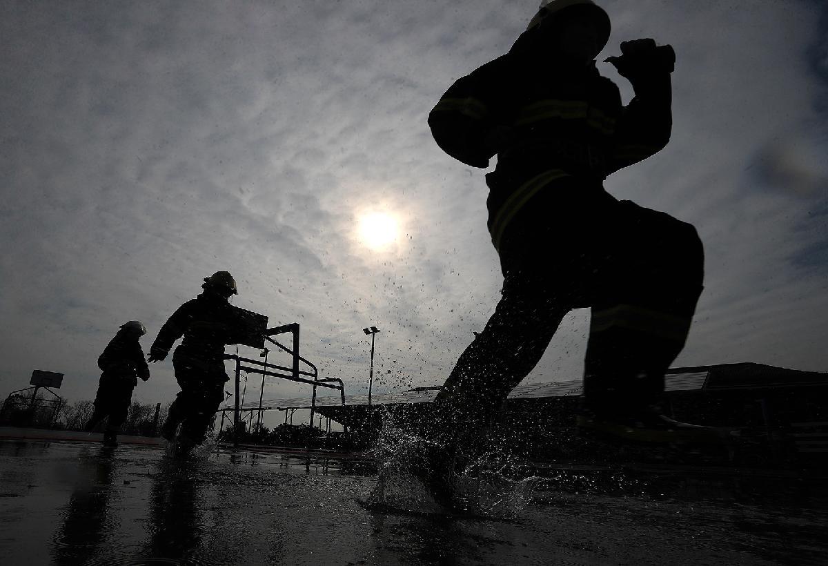 隊(duì)員們進(jìn)行火場(chǎng)救援實(shí)戰(zhàn)訓(xùn)練。