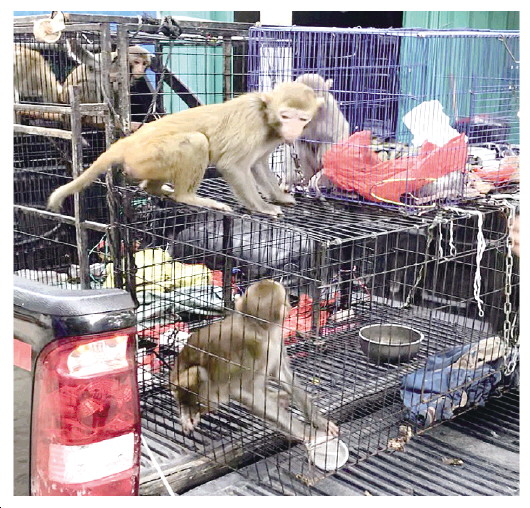▲ 海南省樂(lè)東黎族自治縣森林公安局解救了一批被非法獵捕的亞熱帶獼猴。 本報(bào)記者 邢東偉 本報(bào)通訊員 吳海青 攝