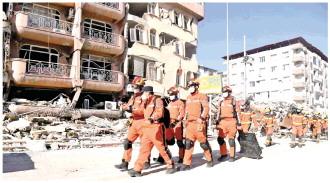 圖為2月14日,中國(guó)救援隊(duì)與中國(guó)香港特區(qū)救援隊(duì)聯(lián)合編組在土耳其哈塔伊省安塔基亞市開展救援工作。 新華社發(fā)