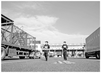圖為在港珠澳大橋,海關(guān)關(guān)員驗放貨物。 俞波 攝