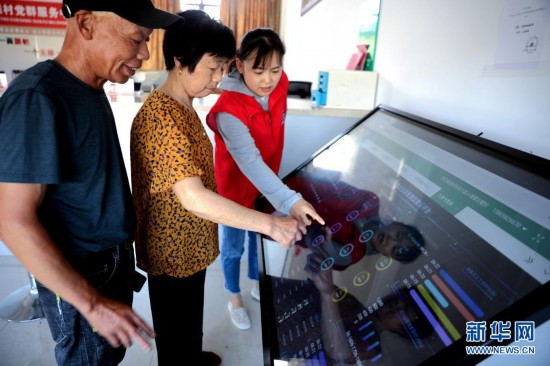 6月23日,在長(zhǎng)興縣小浦鎮(zhèn)光耀村便民服務(wù)大廳,巾幗志愿者通過(guò)生活垃圾分類智慧大數(shù)據(jù)平臺(tái),為村民講解垃圾分類。