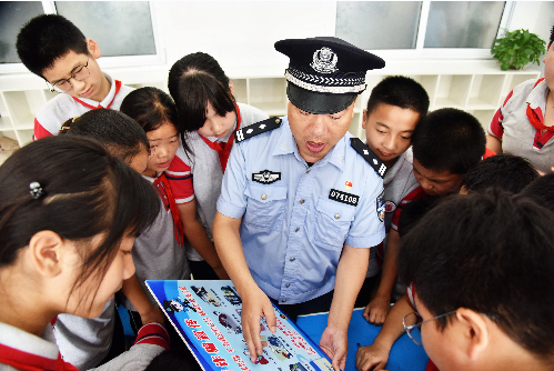 民警向?qū)W生講解反詐知識
