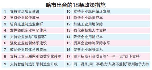 為有效推動制造業(yè)質(zhì)量變革、效率變革、動力變革,哈爾濱市日前出臺《關(guān)于加快推動哈爾濱制造業(yè)高質(zhì)量發(fā)展實(shí)現(xiàn)工業(yè)強(qiáng)市的若干政策措施》,通過支持重點(diǎn)項(xiàng)目建設(shè)、培育先進(jìn)制造業(yè)集群、降低企業(yè)融資成本等18條具體措施,重點(diǎn)支持哈爾濱制造產(chǎn)業(yè)發(fā)展,助推工業(yè)強(qiáng)市。