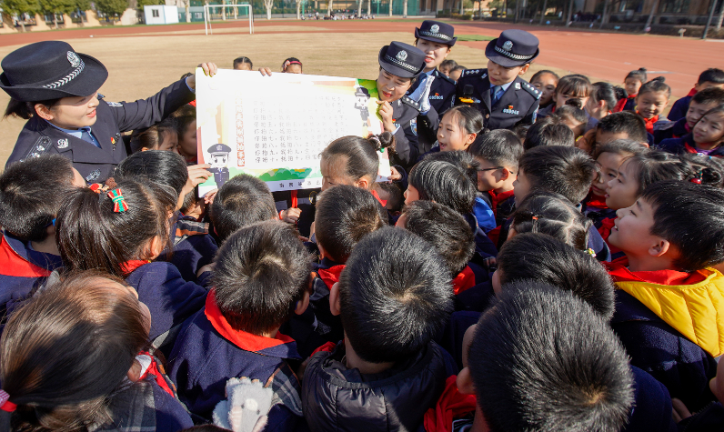 12月21日,南京鐵路公安處南京站派出所聯(lián)合南京鐵路公安處特警支隊(duì)及南京東站派出所走進(jìn)南京一中江北新區(qū)分校,開(kāi)展“安全宣傳進(jìn)校園 寓教于樂(lè)話(huà)平安”活動(dòng),通過(guò)講故事、看演練、寫(xiě)書(shū)法、學(xué)折紙等方式寓教于樂(lè),向?qū)W生宣傳反恐防暴知識(shí)及鐵路安全防范知識(shí),提高學(xué)生安全意識(shí)。圖為民警帶領(lǐng)學(xué)生共同學(xué)習(xí)鐵路及校園安全知識(shí)。