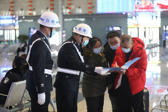 今年春運期間,為進一步提升鐵警執(zhí)法為民形象,山西大同鐵路警方警務督察人員深入旅客群眾中,對民警履職盡責、執(zhí)法形象、為民服務等情況開展實地檢查與民意調研,切實了解實情,掌握旅客群眾需求,讓旅客出行體驗更美好。圖為警務督察人員調研民意。