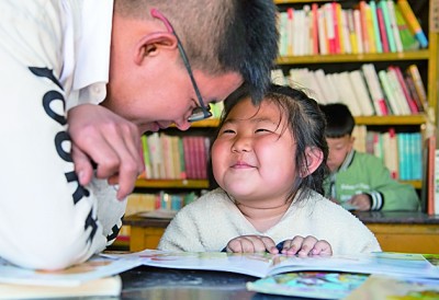 山西靈丘縣東窖村大學(xué)蜂鄉(xiāng)村圖書館內(nèi),小朋友和圖書館負責(zé)人交流。新華社發(fā)
