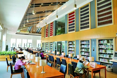 3月29日,湖北武漢春意正濃,游人在武漢經(jīng)濟(jì)開發(fā)區(qū)湯湖公園圖書館看書學(xué)習(xí),品味書香。趙軍攝/光明圖片