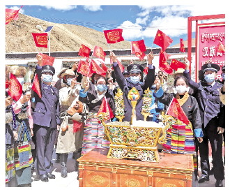 圖為益西江措(右三)和轄區(qū)群眾共同慶祝藏歷新年。 日喀則邊境管理支隊供圖