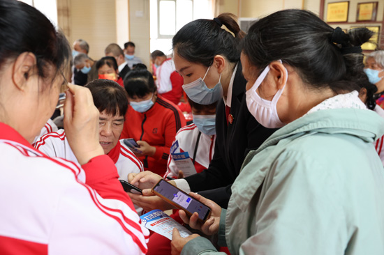 法院干警指導老年大學學生們安裝國家反詐中心APP并進行實名認證。