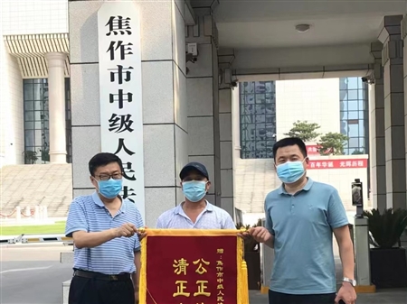 圖為當(dāng)事人給法院送錦旗。