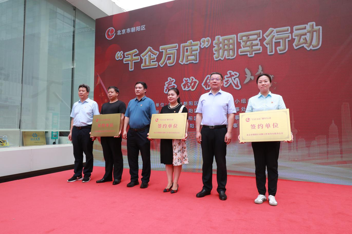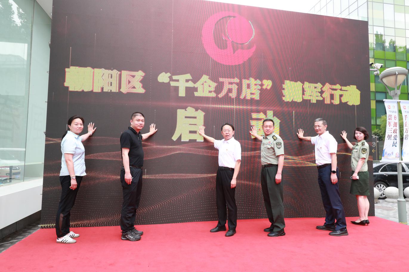 在中國人民解放軍建軍95周年即將到來之際,為提升首都雙擁工作服務保障力度,進一步做好北京市社會化擁軍活動的拓展延伸,7月30日上午,朝陽區(qū)“千企萬店”擁軍行動啟動儀式在三里屯西街隆重舉行。北京市退役軍人事務局副局長賀軍,市退役軍人事務局擁軍優(yōu)撫處處長楊樹旺,朝陽區(qū)委常委、武裝部部長王維民,副區(qū)長孟銳,區(qū)退役軍人事務局局長田志剛,以及三里屯街道、奧運村街道、管莊地區(qū)主要領導,簽約單位、駐區(qū)部隊代表參加活動。