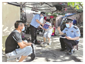 圖③ 曹金生(右一)走訪轄區(qū)群眾,進行夏季安全生產(chǎn)檢查。