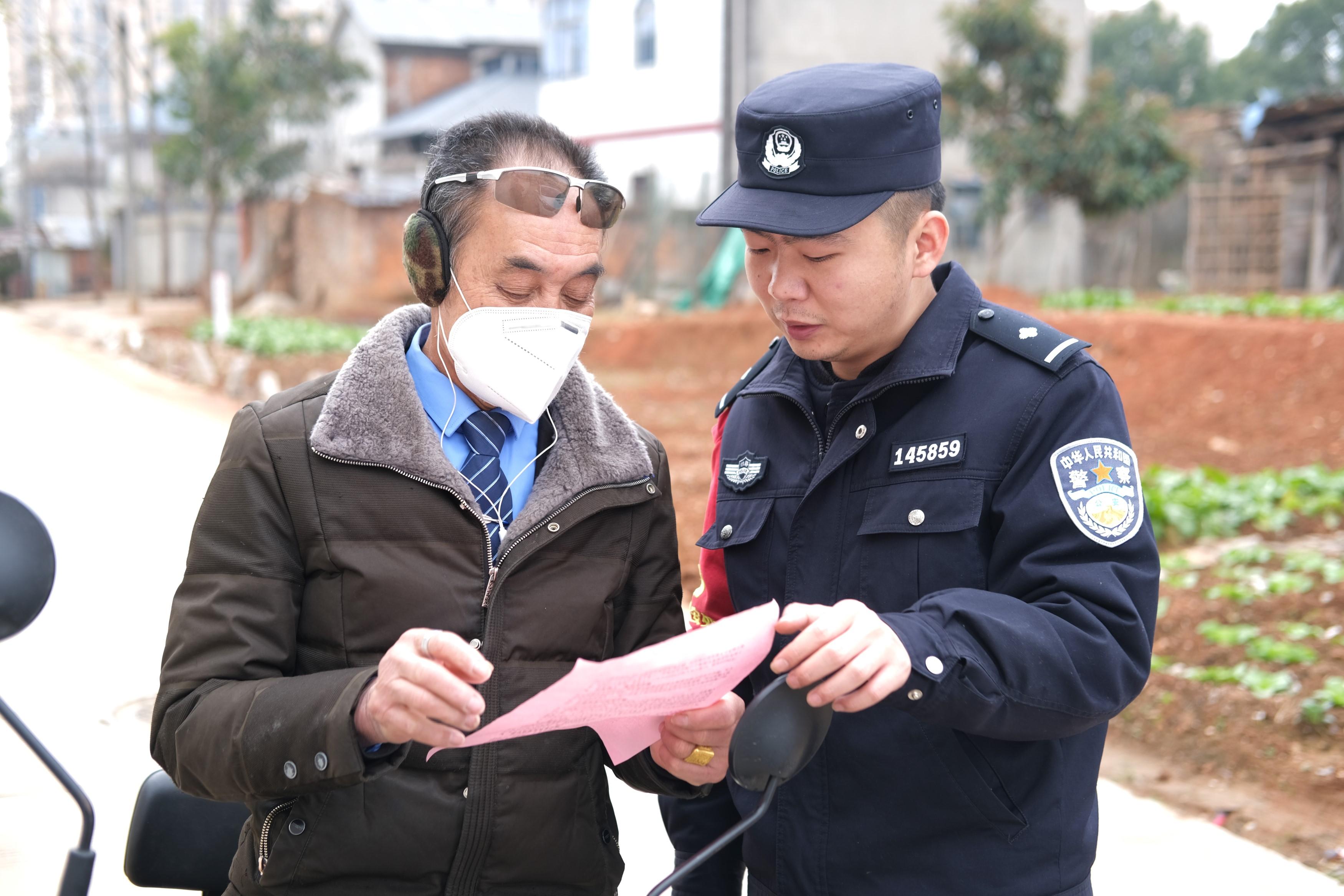 “小劉警官來(lái)了……”村民的招呼聲此起彼伏。劉洪均就像到老友家做客一樣自然地回應(yīng):“來(lái)轉(zhuǎn)轉(zhuǎn),來(lái)轉(zhuǎn)轉(zhuǎn)?!彪S后便和幾位路邊的老人拉起了家常。閑談之中,他一邊給老人們發(fā)放安全單,一邊講授反詐常識(shí)。
