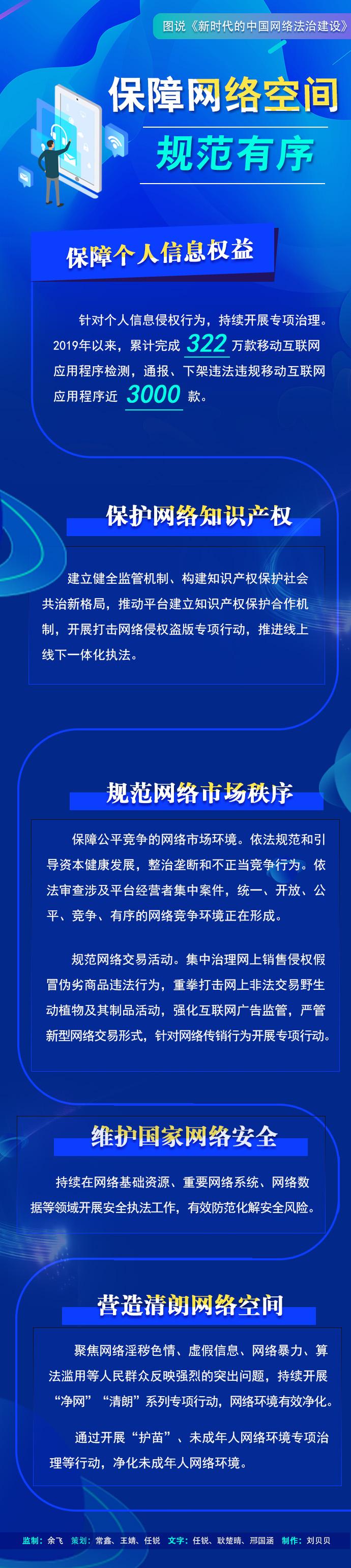 互聯(lián)網(wǎng)是人類文明發(fā)展的重要成果,法治是互聯(lián)網(wǎng)治理的基本方式。長期以來,我國堅持依法治網(wǎng),持續(xù)推進(jìn)網(wǎng)絡(luò)空間法治化,推動互聯(lián)網(wǎng)在法治軌道上健康運行。3月16日,國務(wù)院新聞辦公室發(fā)布《新時代的中國網(wǎng)絡(luò)法治建設(shè)》白皮書,讓我們一起來看中國健康規(guī)范的網(wǎng)絡(luò)空間秩序。