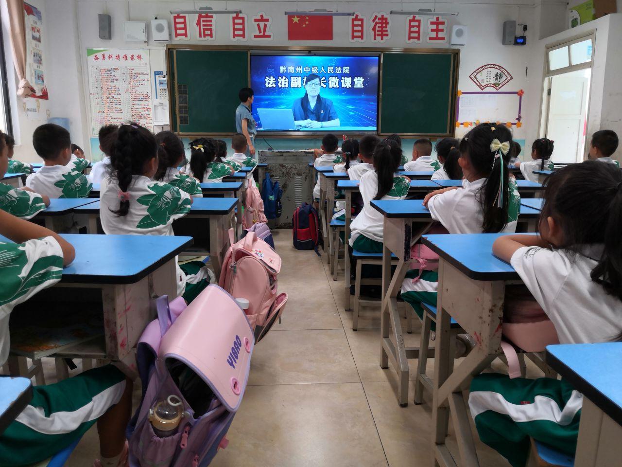 不僅如此,為了進一步增強學生的法律意識,深化開展法治宣傳教育,引導學生樹立社會主義法治觀念,助推平安校園建設(shè),都勻四小還邀請法治副校長金長虹錄制法治教育微講堂,利用班隊會時間為廣大師生播放,讓同學們做到尊法學法守法用法。