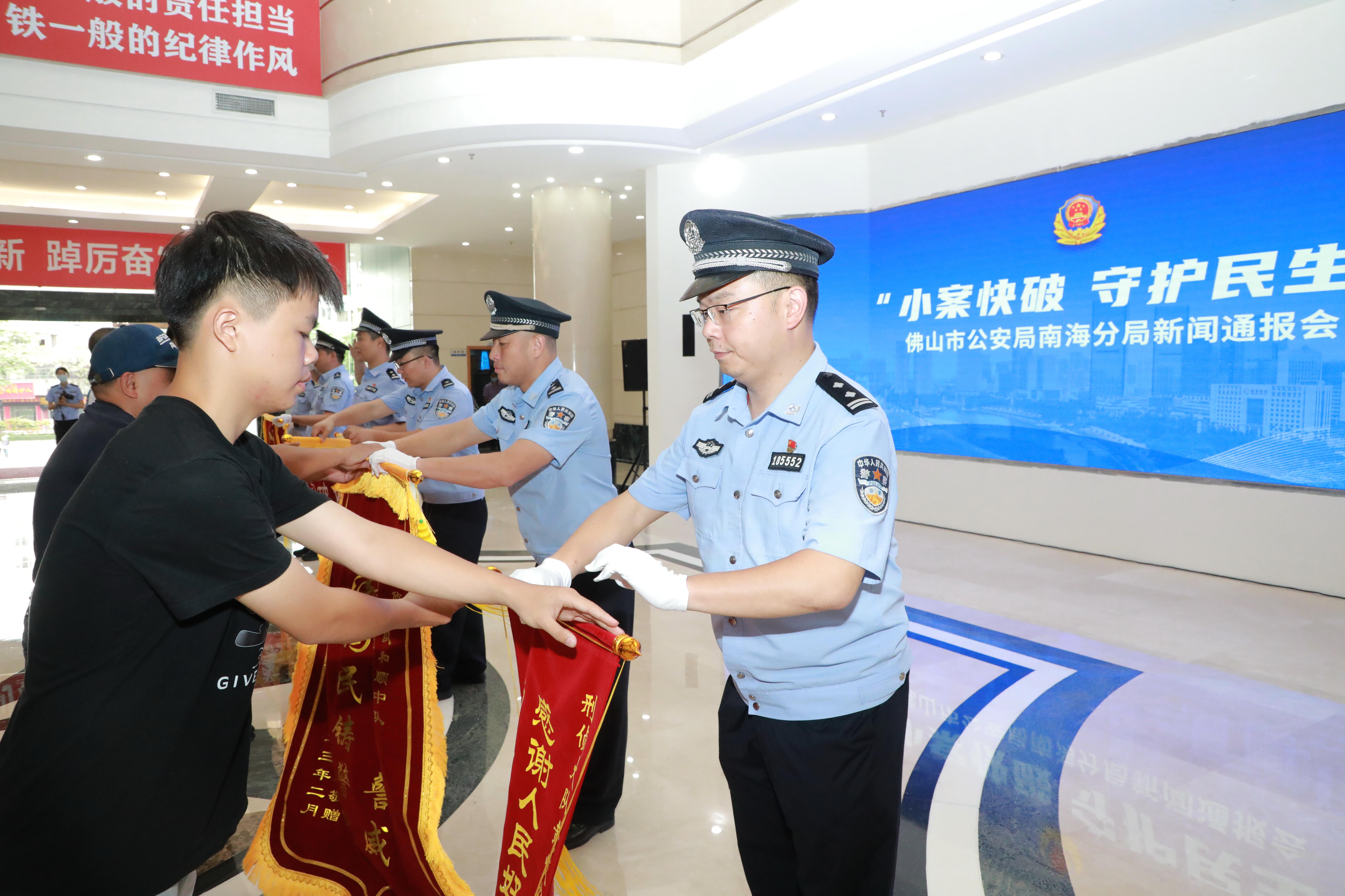 “兵貴神速,報(bào)警不到兩小時(shí),你們就破案了!”“真的沒想到,一輛電動車這么快幫我追回”……近日,在廣東省佛山市公安局南海分局“小案快破 守護(hù)民生”新聞通報(bào)會暨涉案財(cái)物返還儀式的現(xiàn)場,20位群眾領(lǐng)回失物,并向民警遞上錦旗,現(xiàn)場洋溢著失而復(fù)得的喜悅。