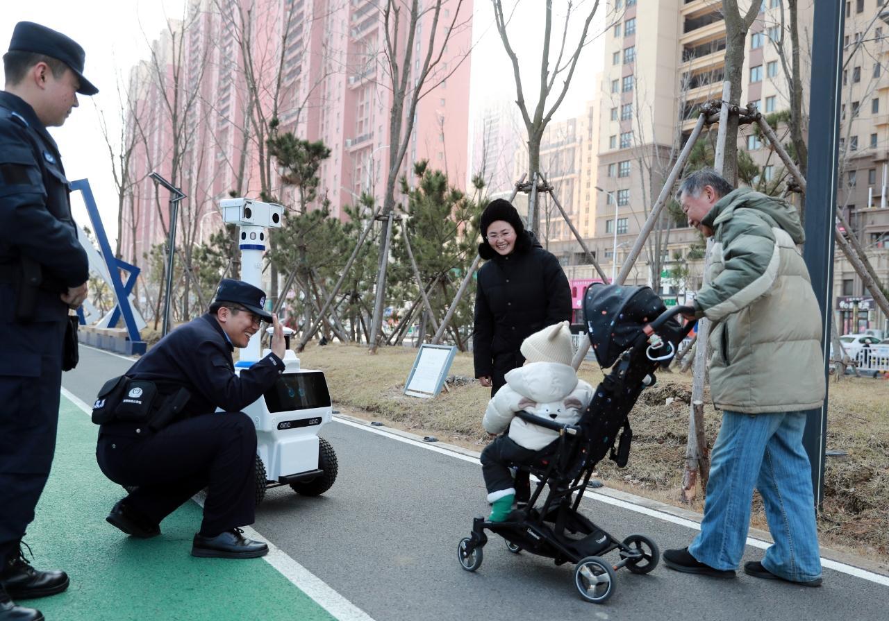 近日,位于山東省煙臺(tái)市高新技術(shù)產(chǎn)業(yè)開(kāi)發(fā)區(qū)的科教基地警務(wù)站正式啟用,警務(wù)站融合了派出所、特巡警等多警種力量,配置無(wú)人機(jī)、巡邏機(jī)器人、多功能自助服務(wù)一體機(jī)等,24小時(shí)全天候開(kāi)展治安管控和便民服務(wù)。圖為警務(wù)站民輔警和巡邏機(jī)器人共同巡邏時(shí),與轄區(qū)群眾互動(dòng)。