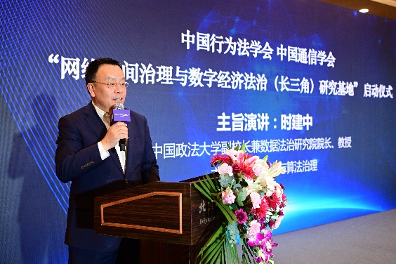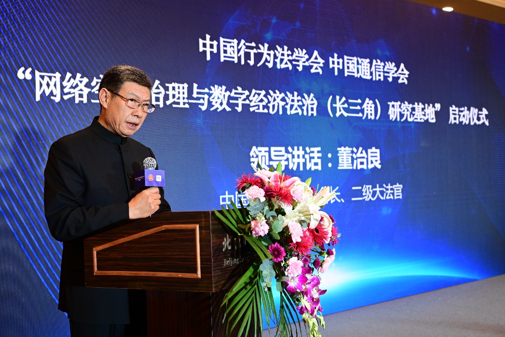 中國行為法學(xué)會(huì)會(huì)長董治良在致辭中指出,“網(wǎng)絡(luò)空間治理”和“數(shù)字經(jīng)濟(jì)法治”已是世界范圍內(nèi)的熱門關(guān)鍵詞之一。近年來,我國在網(wǎng)絡(luò)安全、數(shù)據(jù)安全領(lǐng)域立法取得了重大進(jìn)展,尤其是網(wǎng)絡(luò)安全法、數(shù)據(jù)安全法、個(gè)人信息保護(hù)法的頒布施行,標(biāo)志著我國網(wǎng)絡(luò)安全和數(shù)據(jù)保護(hù)的基礎(chǔ)性法律架構(gòu)已經(jīng)建立。相關(guān)的落實(shí)和細(xì)化基礎(chǔ)性法律的行政法規(guī)、地方性法規(guī)和政府規(guī)章還在制定過程中??梢哉f,我國數(shù)據(jù)安全保障能力在不斷提升,數(shù)據(jù)開發(fā)利用和產(chǎn)業(yè)發(fā)展得到法律的支持和保障,我國數(shù)據(jù)潛力即將得以極大釋放,產(chǎn)出巨量的經(jīng)濟(jì)成果。在這樣的大背景下,我們啟動(dòng)成立“網(wǎng)絡(luò)空間治理與數(shù)字經(jīng)濟(jì)法治(長三角)研究基地”,以加強(qiáng)網(wǎng)絡(luò)治理與數(shù)字法治理論和實(shí)踐問題研究,可謂恰逢其時(shí),意義重大。希望研究基地圍繞黨中央決策部署和國家戰(zhàn)略規(guī)劃,準(zhǔn)確對標(biāo)新時(shí)代的新要求,聚合國內(nèi)外優(yōu)勢科研力量,加強(qiáng)數(shù)字治理、數(shù)據(jù)確權(quán)、數(shù)據(jù)共享、數(shù)據(jù)開放、數(shù)字政府等領(lǐng)域的理論研究,撰寫高層次專題報(bào)告,努力形成一批有辨識(shí)度、有影響力又實(shí)效管用的數(shù)字法治研究成果,把研究基地辦成覆蓋長三角地區(qū)、服務(wù)全國的網(wǎng)絡(luò)治理與數(shù)字經(jīng)濟(jì)法治高端專業(yè)智庫。