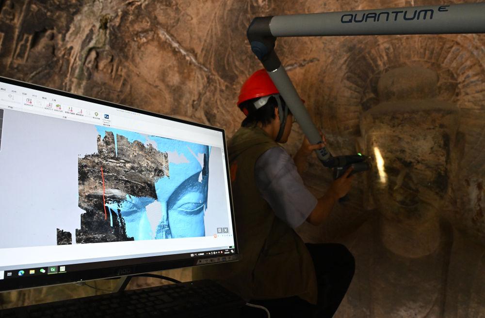 2025年4月9日,武漢大學(xué)文化遺產(chǎn)智能計(jì)算實(shí)驗(yàn)室團(tuán)隊(duì)成員在河南洛陽龍門石窟魏字洞使用關(guān)節(jié)臂掃描儀對(duì)佛像進(jìn)行數(shù)字化掃描。從2005年起,龍門石窟研究院開始為龍門石窟建立數(shù)字化檔案,借助激光掃描、高清攝影等技術(shù)手段收集文物數(shù)據(jù),以數(shù)字的形式留存千年石刻群的風(fēng)貌,致力于讓這一規(guī)模宏大、氣勢(shì)磅礴的石窟瑰寶“芳華永駐”。