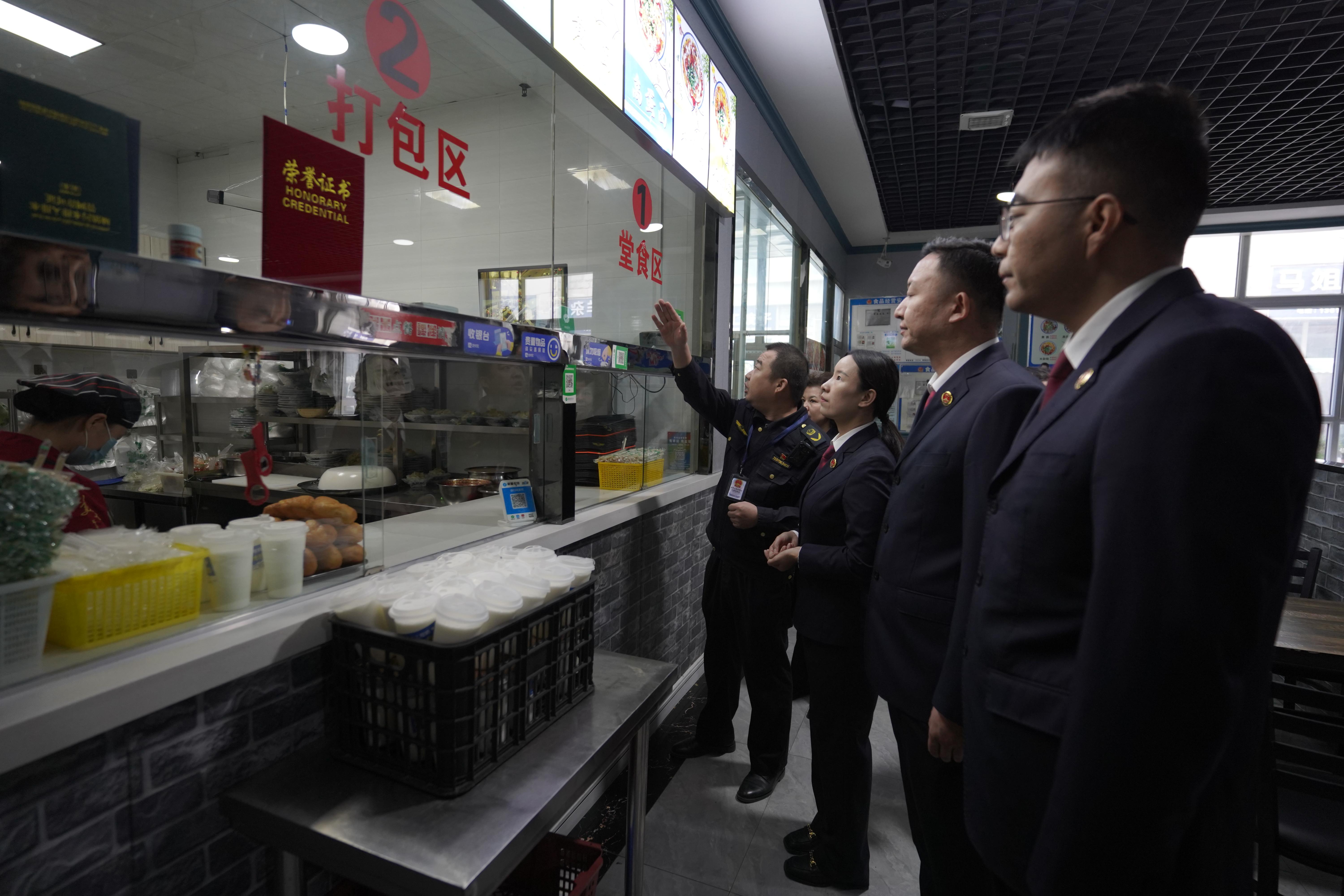圖為10月13日,檢察官與市場(chǎng)監(jiān)管局工作人員走訪升級(jí)改造后的涼皮店。張振宏 攝