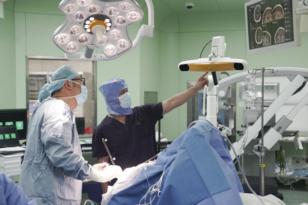 2025年3月25日,路俊鋒教授(左)和吳勁松教授在復(fù)旦大學(xué)附屬華山醫(yī)院手術(shù)室給第一例臨床試驗(yàn)受試者做手術(shù)。2025年3月,中國(guó)科學(xué)院腦科學(xué)與智能技術(shù)卓越創(chuàng)新中心聯(lián)合復(fù)旦大學(xué)附屬華山醫(yī)院與相關(guān)企業(yè),開(kāi)展侵入式腦機(jī)接口的前瞻性臨床試驗(yàn)。這標(biāo)志我國(guó)在侵入式腦機(jī)接口技術(shù)上,成為全球第二個(gè)進(jìn)入臨床試驗(yàn)階段的國(guó)家。