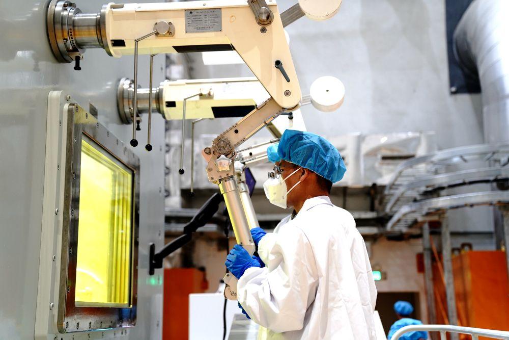 2025年10月24日,科研人員在中國(guó)科學(xué)院上海應(yīng)用物理研究所武威園區(qū)的2兆瓦液態(tài)燃料釷基熔鹽實(shí)驗(yàn)堆加料-取樣熱室工作。2025年,位于甘肅民勤的2兆瓦液態(tài)燃料釷基熔鹽實(shí)驗(yàn)堆已成功實(shí)現(xiàn)國(guó)際首次釷鈾核燃料轉(zhuǎn)換,成為目前國(guó)際上唯一運(yùn)行且實(shí)現(xiàn)釷燃料入堆的熔鹽堆,為我國(guó)未來(lái)規(guī)模化開(kāi)發(fā)利用釷資源、發(fā)展第四代先進(jìn)核能系統(tǒng)提供核心技術(shù)支撐與可行方案。