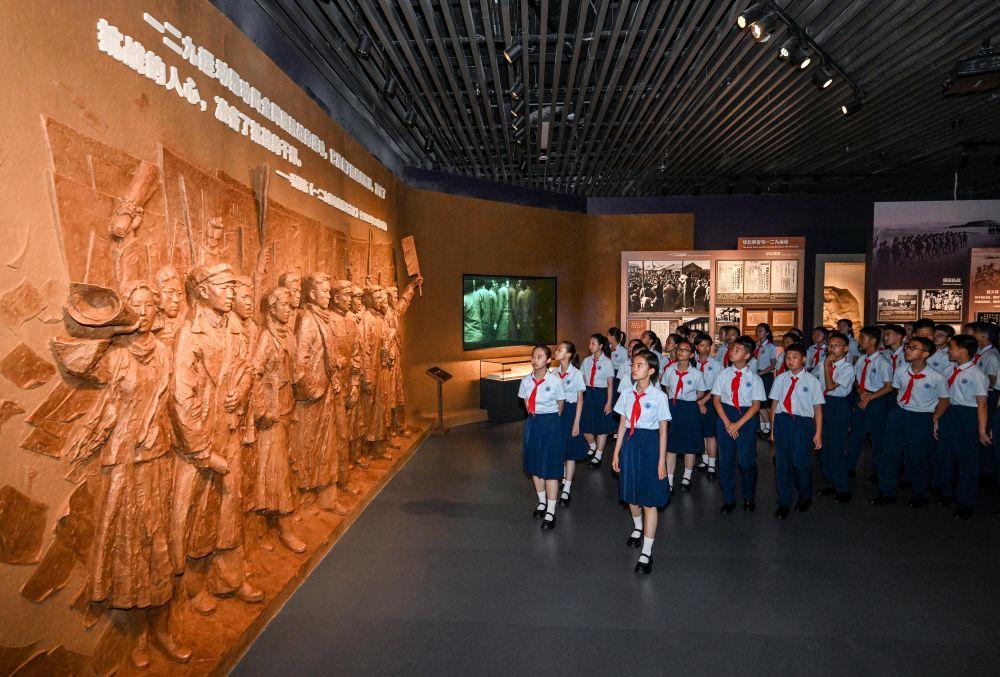 2025年7月7日,在北京中國人民抗日戰(zhàn)爭紀(jì)念館,北京市第十二中學(xué)的少先隊員參觀紀(jì)念全民族抗戰(zhàn)爆發(fā)88周年儀式暨《為了民族解放與世界和平》主題展覽。