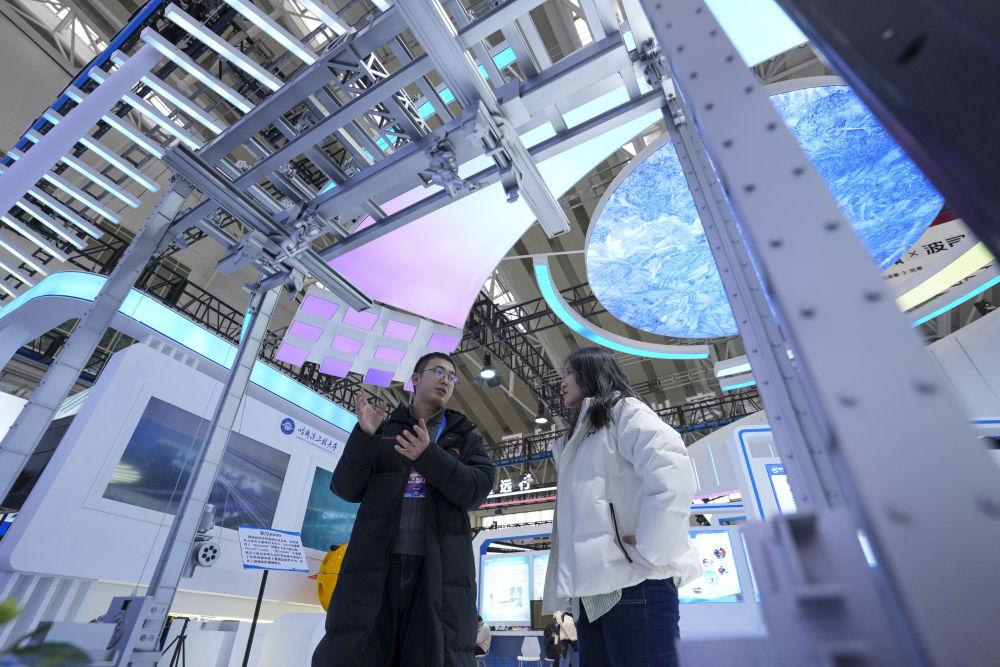 2026年1月6日,在2026哈爾濱國(guó)際冰雪經(jīng)濟(jì)博覽會(huì)展會(huì)現(xiàn)場(chǎng),參會(huì)嘉賓(左)為參觀者介紹智能大型冰雕自動(dòng)化搭建機(jī)器人。本屆博覽會(huì)旨在通過(guò)成果展示、產(chǎn)業(yè)交流與投資合作,展現(xiàn)“冰雪+經(jīng)濟(jì)”“冰雪+科技”等融合發(fā)展成果,為全球投資者提供市場(chǎng)機(jī)遇。