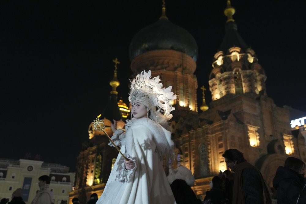 2025年12月15日,游客在哈爾濱建筑藝術(shù)廣場(chǎng)攝影旅拍。