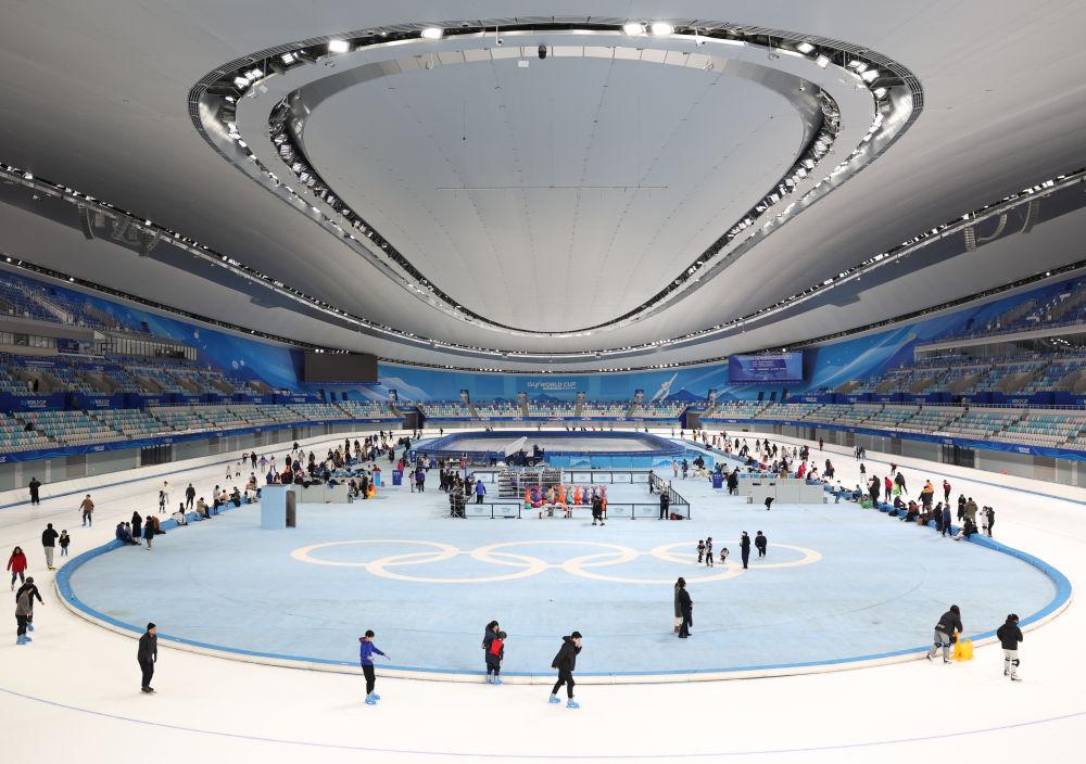 2025年1月4日,游客在國家速滑館“冰絲帶”體驗滑冰。新華社記者張晨霖攝