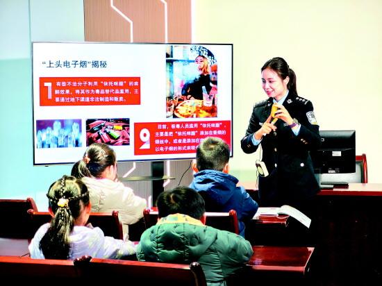 圖為莫干山女子強(qiáng)戒所民警方艾為“法治小記者”講解毒品相關(guān)知識。