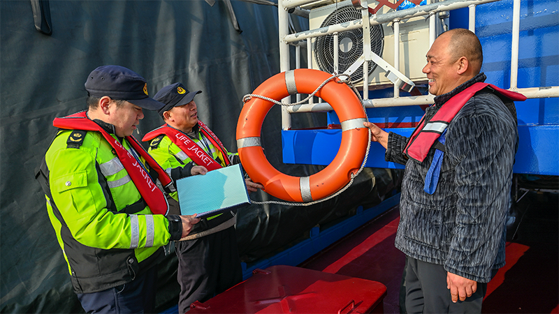 80分鐘的水上航程,寒風裹著濕氣撲面而來,乘船是抵達這里的唯一方式??焱Э堪逗?,馬浪崗交通執(zhí)法中隊黨支部書記孫成斌就迎了上來,黝黑的臉上帶著笑意。