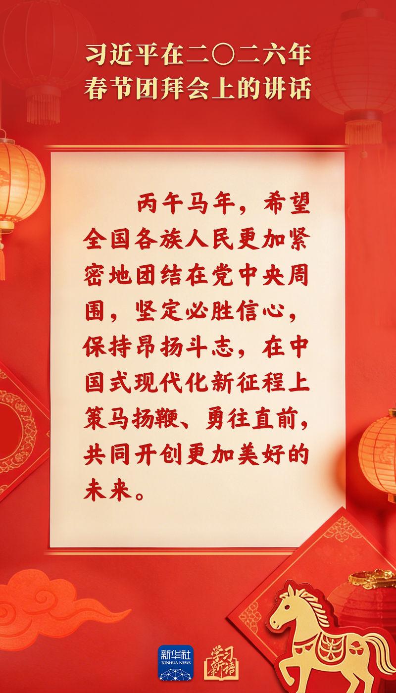 原標(biāo)題:學(xué)習(xí)新語|策馬揚鞭、勇往直前!2026年春節(jié)團(tuán)拜會總書記講話金句