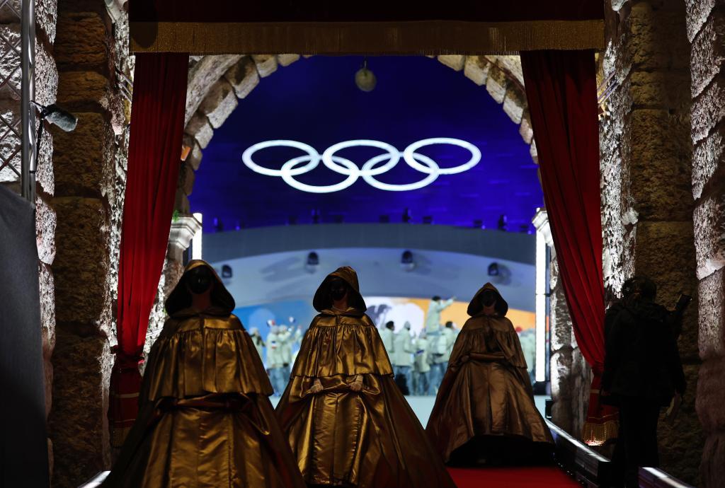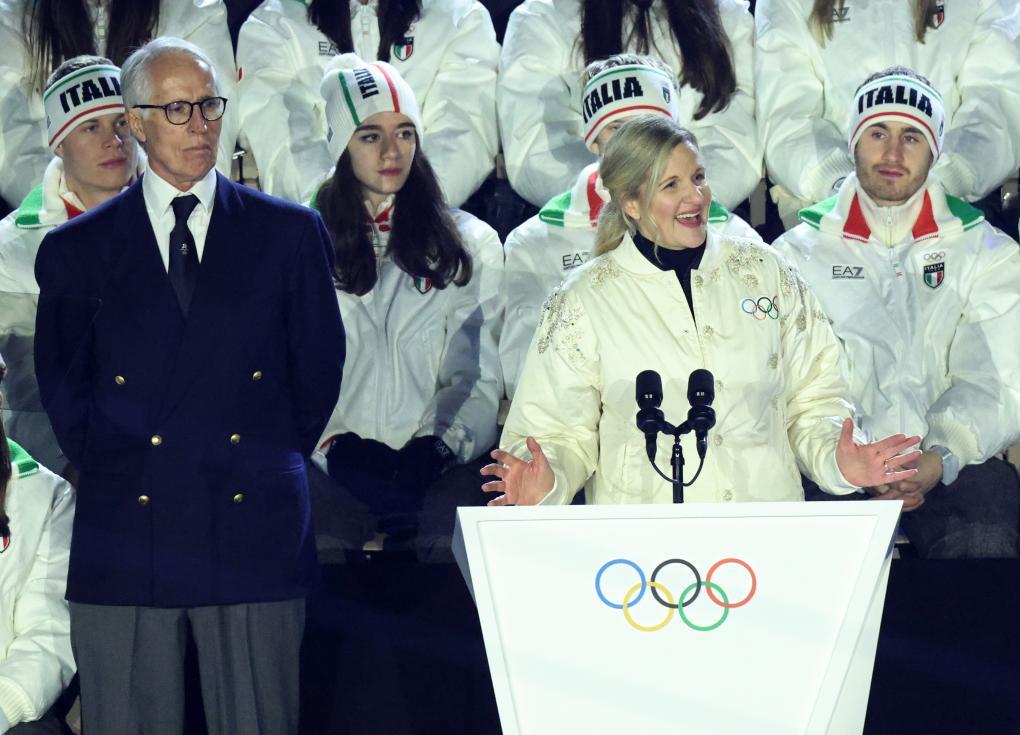 閉幕式尾聲,奧林匹克會(huì)旗緩緩降下,由米蘭市市長(zhǎng)薩拉和科爾蒂納丹佩佐市市長(zhǎng)洛倫齊交給考文垂,再由考文垂交給2030年冬奧會(huì)舉辦地法國(guó)普羅旺斯-阿爾卑斯-藍(lán)色海岸大區(qū)和奧弗涅-羅訥-阿爾卑斯大區(qū)代表。