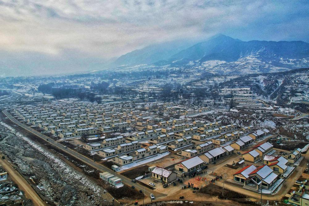 這是甘肅省臨夏回族自治州積石山縣劉集鄉(xiāng)劉集村集中安置點(2024年12月6日攝,無人機照片)。新華社發(fā)(張維吉 攝)