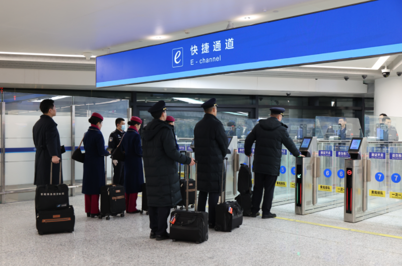 “啟用機組快捷通道,是我們落實國家移民管理局便利措施的具體行動?!睘豸斈君R出入境邊防檢查站執(zhí)勤四隊隊長王巍介紹,新模式下,機組人員單人通關(guān)時間較以往縮短了近50%,“這不僅是速度的提升,更能讓我們在提升通關(guān)效能、優(yōu)化服務體驗方面邁出新的一步。”
