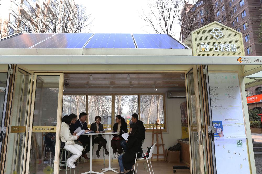 2023年2月17日,在上海虹橋街道“融·古北驛站”,人大代表向轄區(qū)內(nèi)的商戶宣傳普及新施行的《上海市住房租賃條例》。虹橋街道是全國(guó)人大常委會(huì)法工委2015年在全國(guó)設(shè)立的首批四個(gè)基層立法聯(lián)系點(diǎn)之一。新華社記者 劉穎 攝