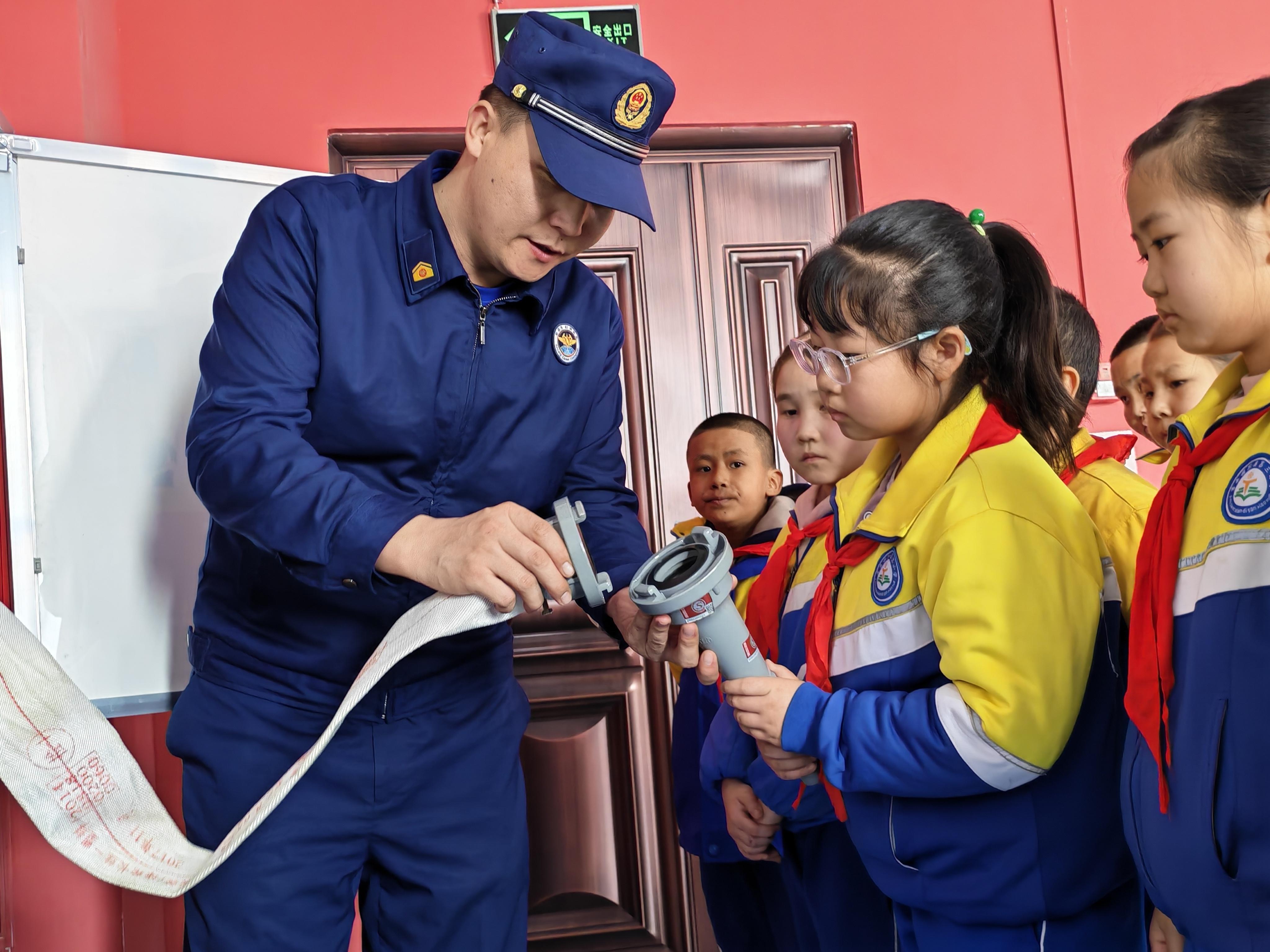 圖為吉木薩爾縣消防救援大隊走進吉木薩爾縣第三小學,組織學生走進校園消防科普教育基地開展沉浸式培訓。