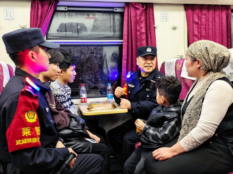 嘉峪關(guān)開往北京豐臺的K42次列車,全程運行31小時、途經(jīng)???9個站點,春運期間始終處于滿員運行狀態(tài),旅客出行安全、旅途順暢的背后,離不開鐵路民警的默默守護(hù)。在這趟千里歸途的列車上,蘭州鐵路公安局武威公安處乘警支隊的一對師徒乘警,用堅守詮釋擔(dān)當(dāng),以傳承續(xù)寫初心,60歲的乘警長孫湘林迎來從警生涯的最后一個春運,24歲的年輕乘警郭輝踏上職業(yè)生涯的首次春運崗,一老一少、一師一徒,在飛馳的列車上,完成了一場溫暖而有力的藏藍(lán)接力。