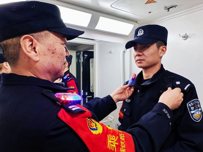 一直忙碌到凌晨一點半,師徒二人才終于能在車廂角落短暫坐下歇息,趁著這片刻空閑,他們復(fù)盤當(dāng)日工作,梳理值守要點,總結(jié)經(jīng)驗不足??粗降苷J(rèn)真記錄、虛心求教的模樣,孫湘林的眼里滿是欣慰,也藏著難以割舍的情愫?!案闪艘惠呑映司亓艘惠呑恿熊嚕换窝劬偷搅送诵莸娜兆?,最舍不得的,還是這趟穿梭千里的列車,還有車上這些盼著團(tuán)圓回家的旅客。不過好在,有小郭這樣踏實肯干、心懷熱愛的年輕人接棒,我總算能放心地把守護(hù)的接力棒交出去了?!痹捳Z間,是老民警對崗位的深情,更是對藏藍(lán)傳承的篤定。