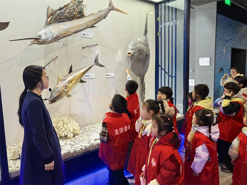 青少年火熱報名法治研學(xué)營,跟著普法志愿者參觀中國海洋漁文化館,在熟悉的海島場景中學(xué)習(xí)法律知識,通過近距離觀察海洋生物和船舶漁具,體驗?zāi)M海上作業(yè),進(jìn)一步增強(qiáng)保護(hù)海洋、傳承文化的自覺,浸潤式提升法治素養(yǎng)。