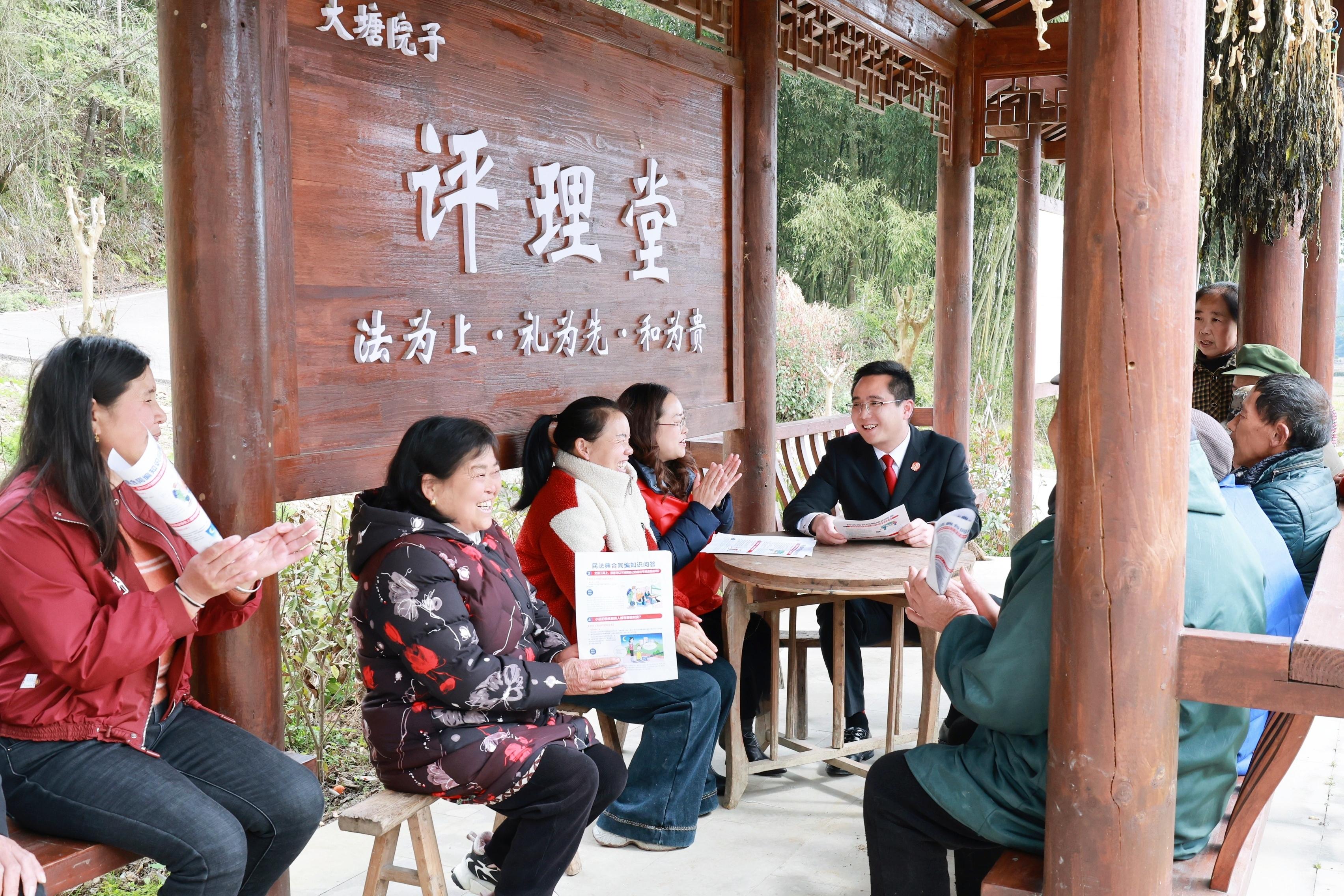 圖為法官與群眾面對(duì)面互動(dòng)交流,主動(dòng)接受村民法律咨詢。