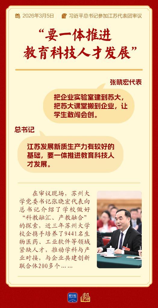 “江蘇發(fā)展新質(zhì)生產(chǎn)力有較好的基礎(chǔ),要一體推進(jìn)教育科技人才發(fā)展?!笨倳浾f。