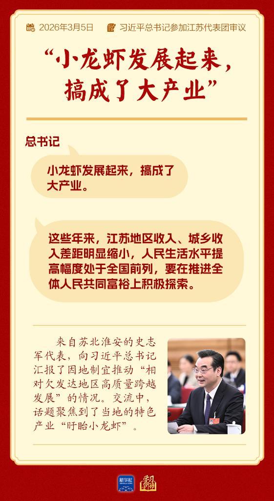 “小龍蝦發(fā)展起來,搞成了大產(chǎn)業(yè)。”總書記笑著說。