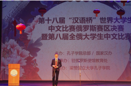 4月26日,第十八屆“漢語橋”世界大學生中文比賽俄羅斯賽區(qū)決賽暨第八屆全俄大學生中文比賽在俄羅斯梁贊市落下帷幕。來自俄羅斯莫斯科、圣彼得堡、喀山、葉卡捷琳堡、伊爾庫茨克、哈巴羅夫斯克、符拉迪沃斯托克等七個賽區(qū)的35名選手,圍繞“天下一家”的比賽主題進行了激烈角逐。中華人民共和國駐俄羅斯聯(lián)邦大使館教育處、駐葉卡捷琳堡總領(lǐng)事館、駐哈巴羅夫斯克總領(lǐng)事館代表,梁贊州教育與青年政策廳、梁贊市政府、梁贊國立大學校方代表,以及來自全俄各地的中俄大學生代表等400余人觀摩了比賽。