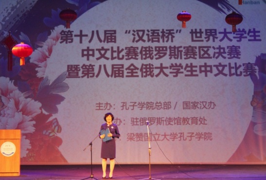 賽前,梁贊國立大學常務副校長謝·弗·杰米多夫、中華人民共和國駐俄羅斯聯(lián)邦大使館教育處一秘姜明、梁贊州教育與青年政策廳廳長奧·謝·謝金丁娜分別致辭。杰米多夫表示,能夠承辦全俄大學生中文比賽是梁贊國立大學的榮幸,同時也是對該校漢語教學工作和孔子學院建設的認可,該校將繼續(xù)支持漢語教學的發(fā)展。姜明對進入決賽的各位選手表示祝賀,希望他們踐行“天下一家”的比賽主題,以賽會友,在未來的學習中繼續(xù)提高自身漢語水平,為中俄兩國人文交流及各領(lǐng)域合作做出貢獻。謝金丁娜歡迎來自七個賽區(qū)的選手來到歷史悠久、人杰地靈的梁贊州,希望中俄兩國青年以語言學習為基礎(chǔ),加深對彼此國家歷史、文化的了解。